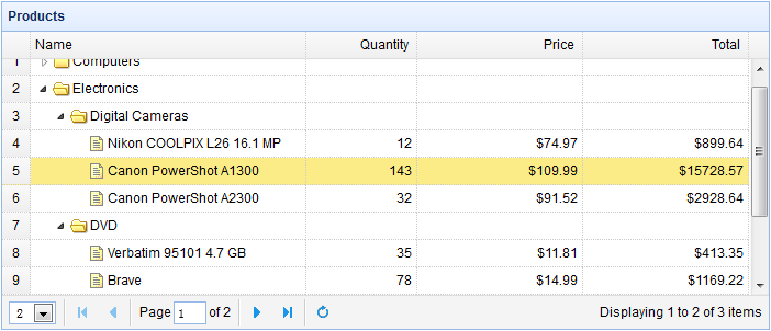 本教程展示如何向带有动态加载特性的树形网格(TreeGrid)添加分页。