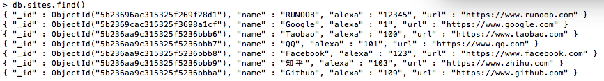以下实例删除 name 字段值为 "Taobao" 的文档:
